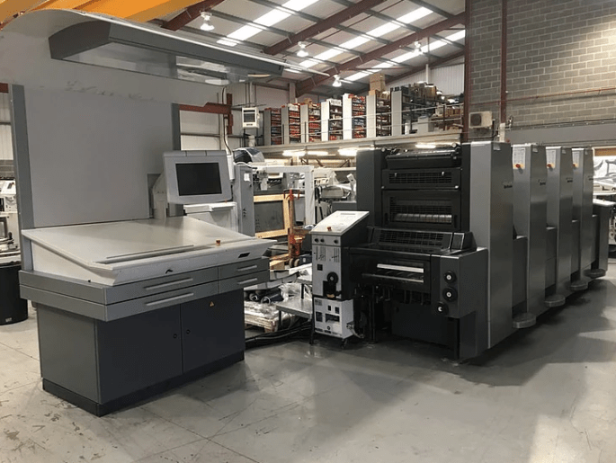 The latest machine to go through our full refurbishment program is this Heidelberg 102-5 Colour Plus Coater. Take a look at our photos below. For further information please contact our office on sales@dhprint.co.uk
